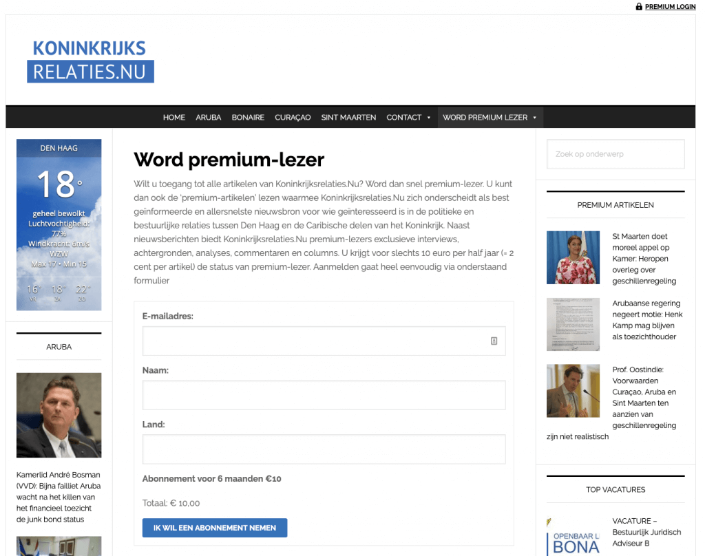 De online krant van Koninkrijksrelaties.Nu draait op WordPress en wordt gevuld met reguliere artikelen en premium artikelen. Speciaal voor de premium lezers zijn er unieke, informatieve artikelen die niet toegankelijk zijn voor reguliere bezoekers van de website. Koninkrijksrelaties.Nu zocht naar een manier om het ontvangen van abonnementsbetalingen makkelijker te maken en Paytium werd aanbevolen door de websitebeheerder. “Mensen hebben de mogelijkheid om premium lezer te worden. Zij sluiten dan een abonnement af voor de duur van zes maanden tegen een bedrag van 10 euro. Wij maken gebruik van Paytium voor het ontvangen van deze betalingen in WordPress.”