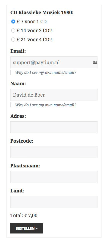 [paytium name="Formulier naam" description="Product naam" button_label="Bestellen"]