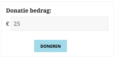 [paytium name="Formulier naam" description="Donatie" amount="25" button_label="Nu €25 doneren"]