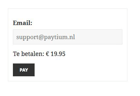 [paytium name="Formulier naam" description="Product naam" amount="19,95" button_label="Pay"]